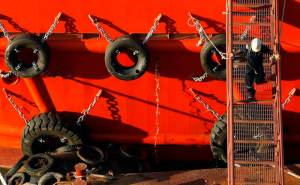 A worker disembarks a ship at a shipyard in Singapore July 10, 2013. Connected to more than 600 ports in some 120 countries, Singapore is one of the world’s busiest shipping hubs, and is often called the gateway to Asia. It plans to increase its total capacity dramatically as it competes with other massive ports in the region such as Shanghai, Hong Kong and Shenzhen in China and Busan in South Korea. Picture taken July 10, 2013. REUTERS/Edgar Su (SINGAPORE – Tags: MARITIME BUSINESS SOCIETY)
