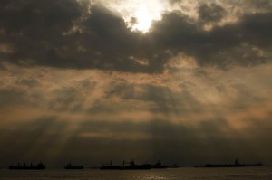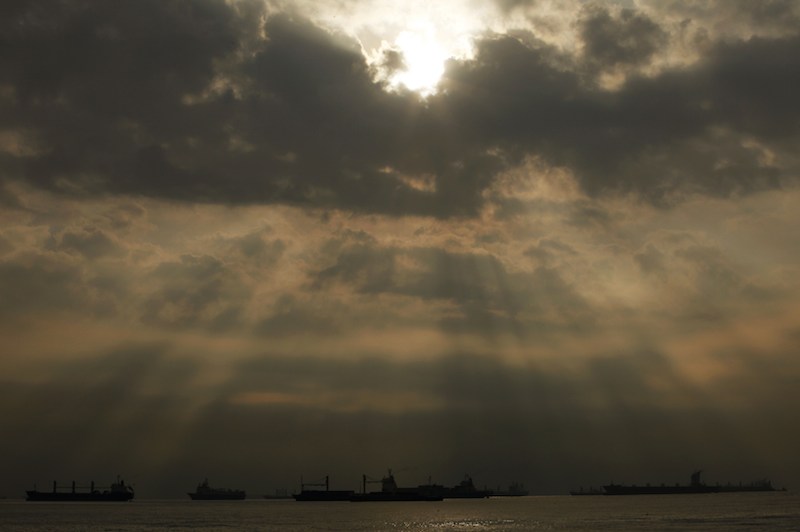 Container ships are anchored at sea as they wait to berth at port terminals in Singapore October 28, 2013. Connected to more than 600 ports in some 120 countries, Singapore is one of the world’s busiest shipping hubs, and is often called the gateway to Asia. It plans to increase its total capacity dramatically as it competes with other massive ports in the region such as Shanghai, Hong Kong and Shenzhen in China and Busan in South Korea. Picture taken October 28, 2013. REUTERS/Edgar Su (SINGAPORE – Tags: MARITIME BUSINESS SOCIETY)