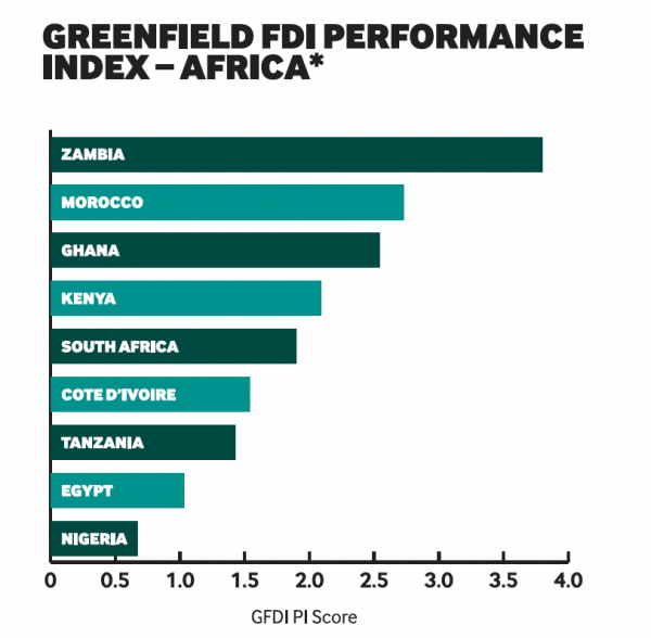 South Africa had an unfortunate year in that while FDI increased, its economic growth outpaced investment, resulting in a drop in this year’s index.