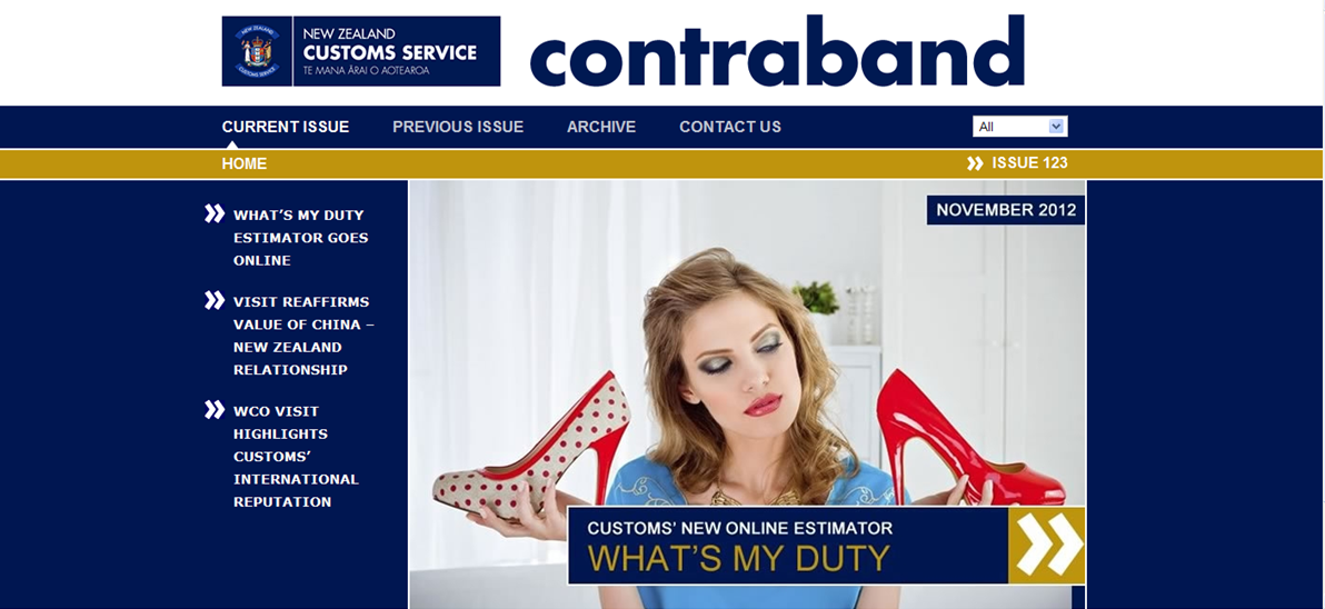 New Zealand Customs popular Contraband magazine is now available as an online publication. You can still however locate and link to previous publications that are downloadable in .pdf format. The latest edition includes articles on  –